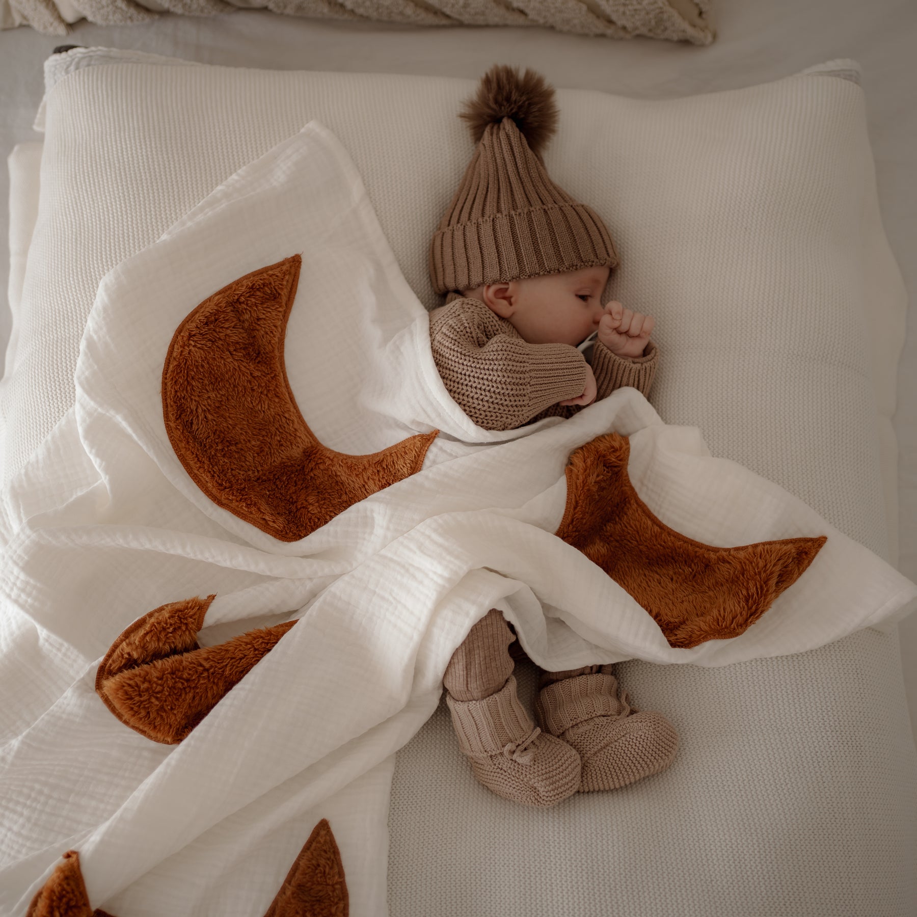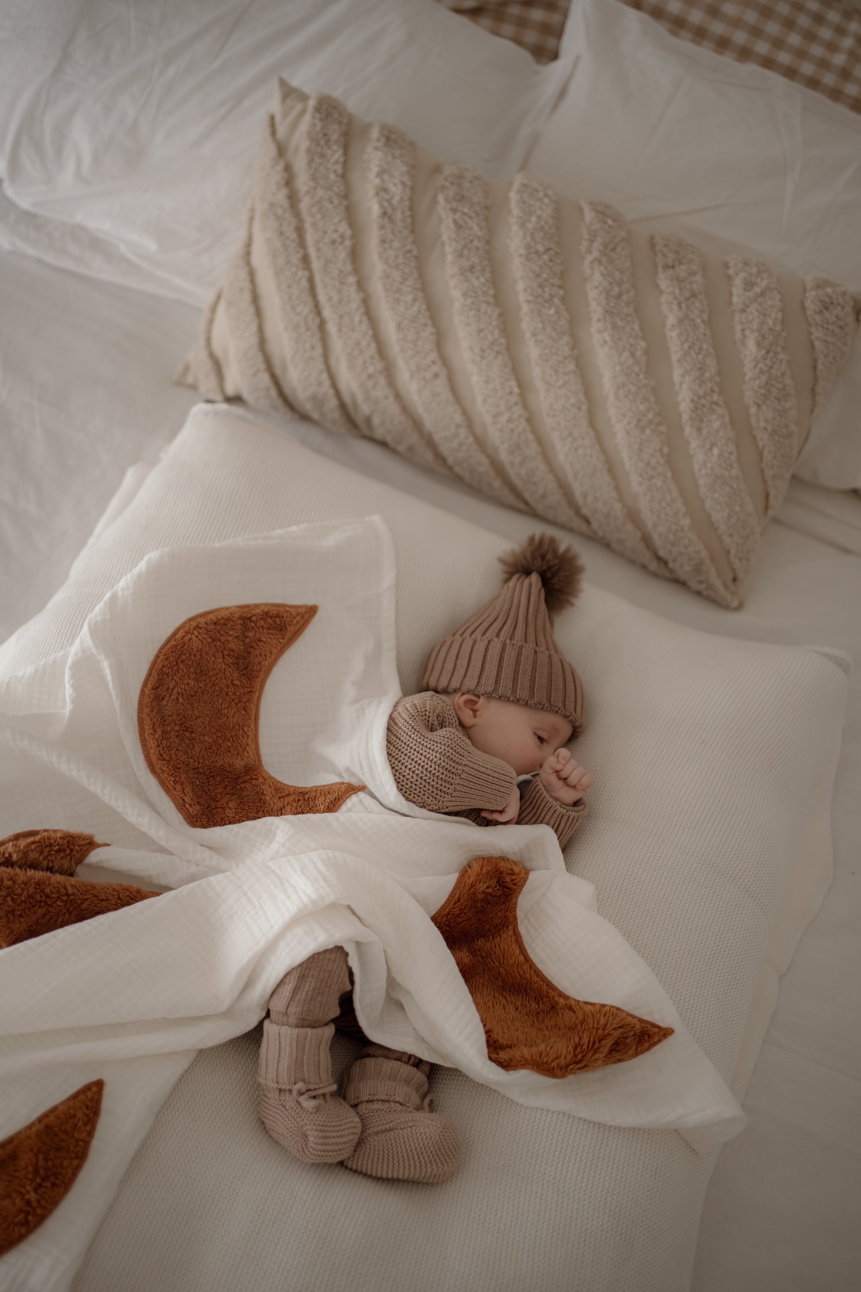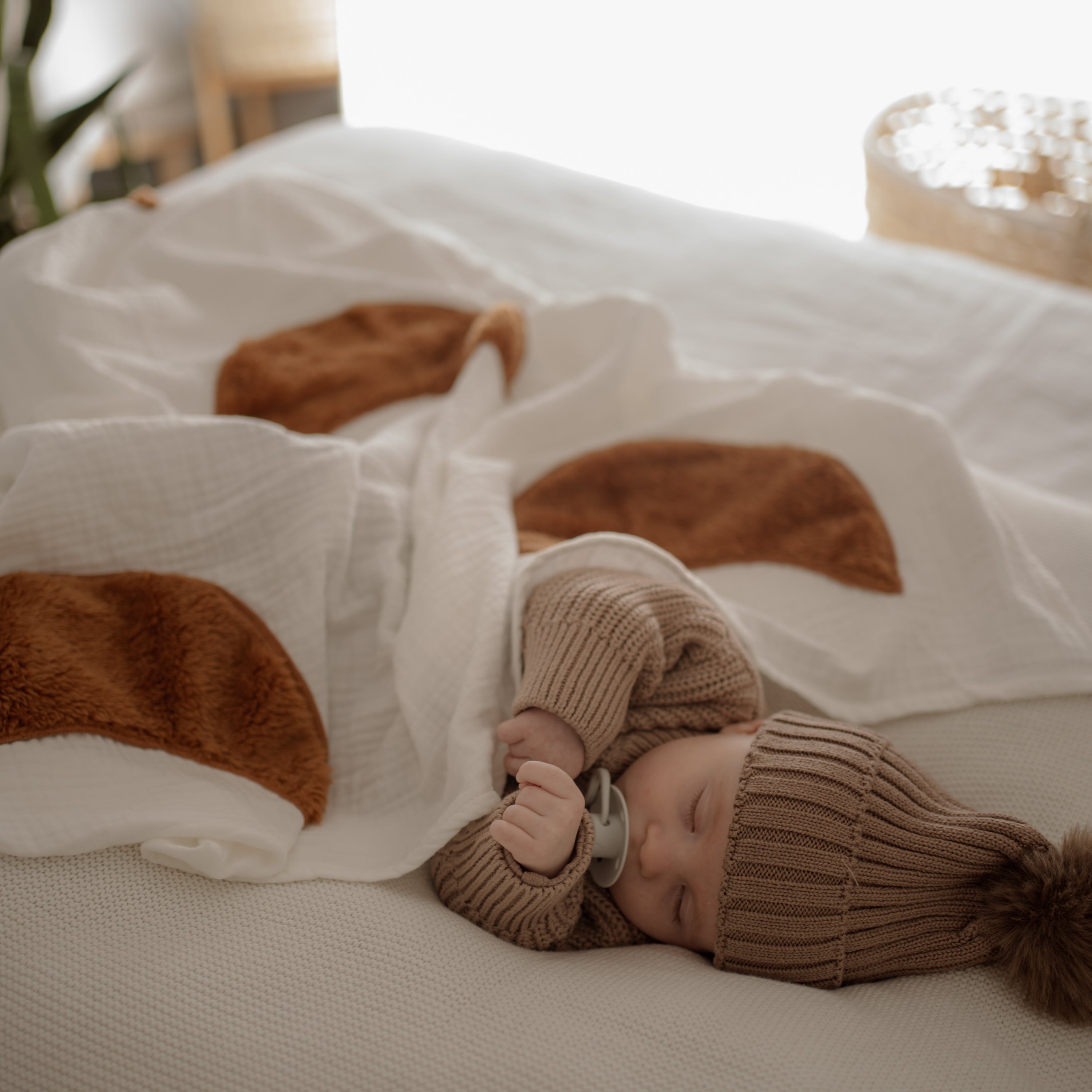 At The Blankie Co., every product begins with the thoughtful selection of fabrics. We choose hypoallergenic, durable materials to care for delicate baby skin while ensuring our products remain soft and reliable for years to come. All our textiles are backed by safety and quality certifications, giving you confidence in every snuggle. Gentle to the touch and beautifully breathable, our fabrics are designed to keep your little one comfortable and cosy.
